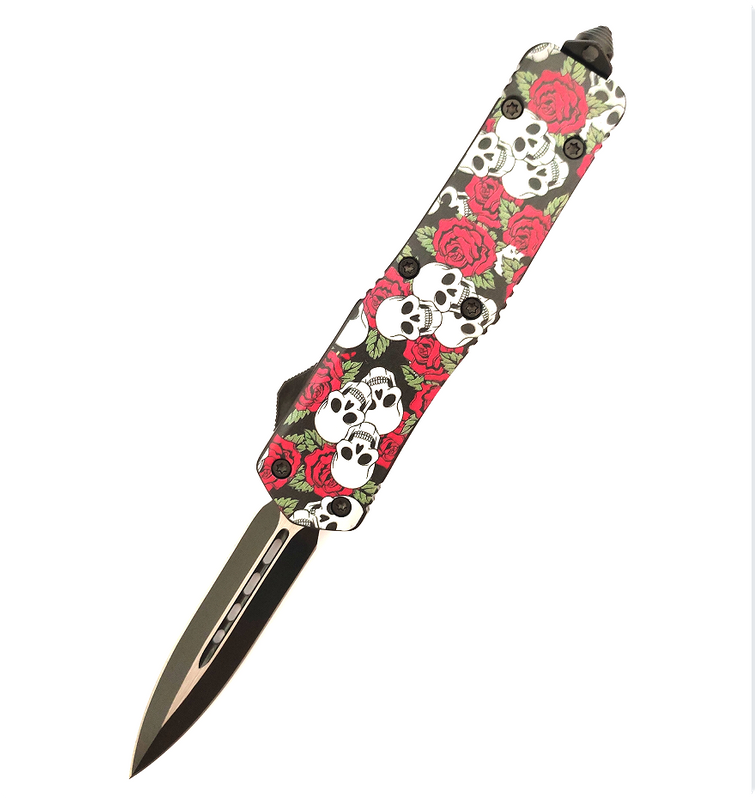 ghost skull multiple styles double sided switch blade defense dual action otf knife